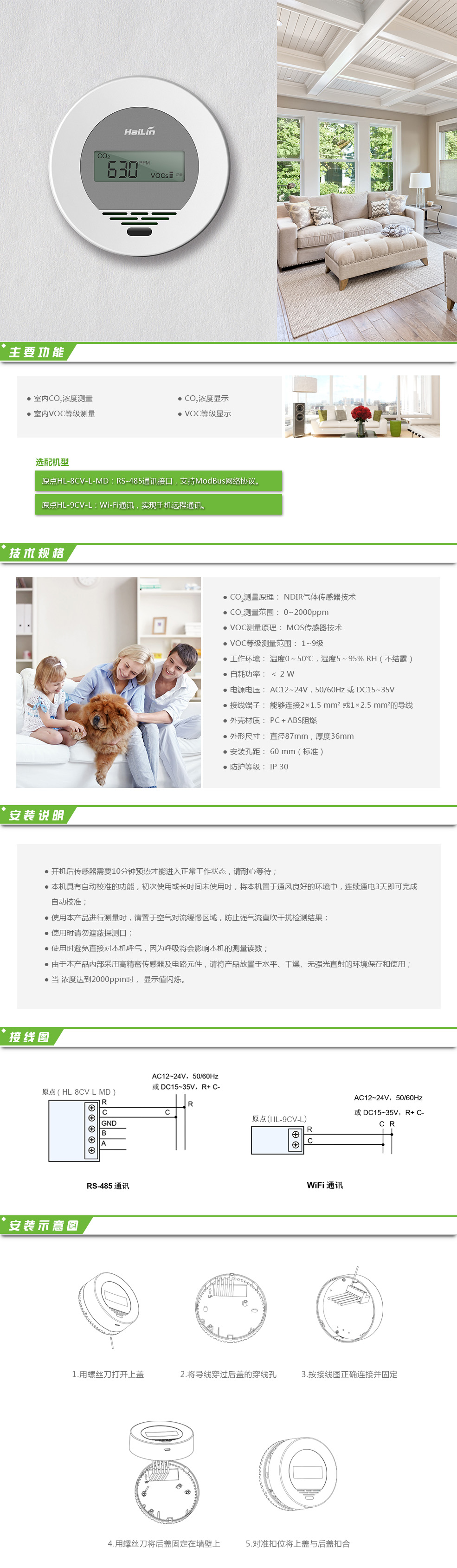海林“原點(diǎn)”CO2-VOC監(jiān)測(cè)傳感器是一款實(shí)時(shí)空氣質(zhì)量檢測(cè)儀,CO2傳感器監(jiān)測(cè)采用國(guó)際先進(jìn)的NDIR氣體傳感器技術(shù),VOC傳感器結(jié)合最先進(jìn)的MOS傳感器技術(shù)與智能檢測(cè)算法監(jiān)測(cè)揮發(fā)性有機(jī)化合物,由微處理器對(duì)檢測(cè)數(shù)據(jù)進(jìn)行運(yùn)算并將計(jì)算結(jié)果與污染等級(jí)同時(shí)顯示在液晶上。
