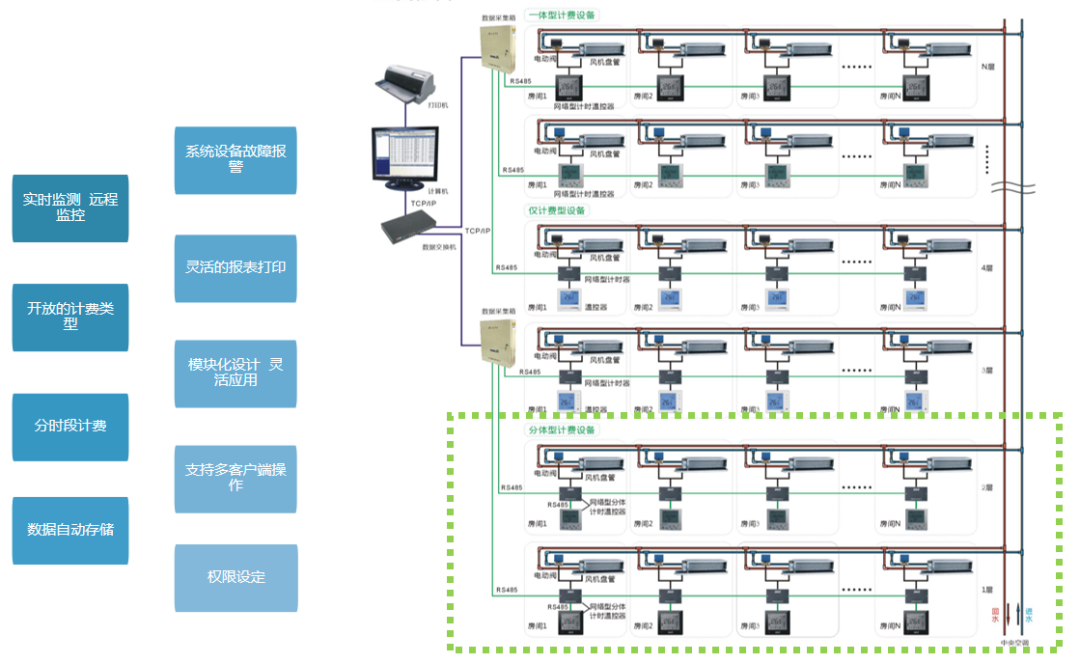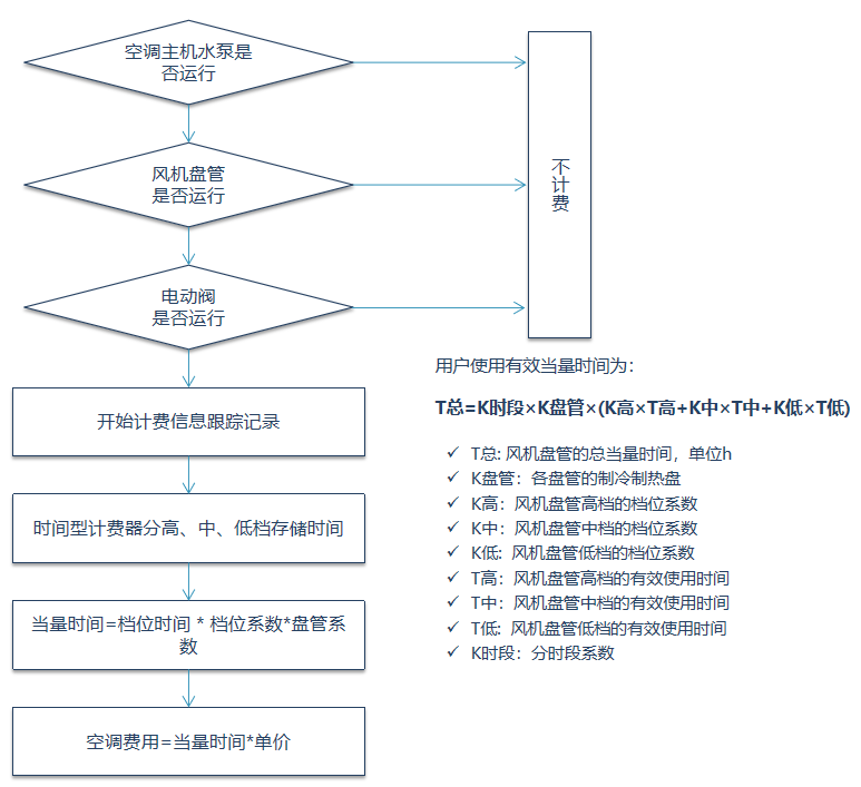 當系統(tǒng)提供制冷或制熱的前提下,用戶電動閥門打開,用戶的風機盤管有效運行,系統(tǒng)開始監(jiān)控計費。