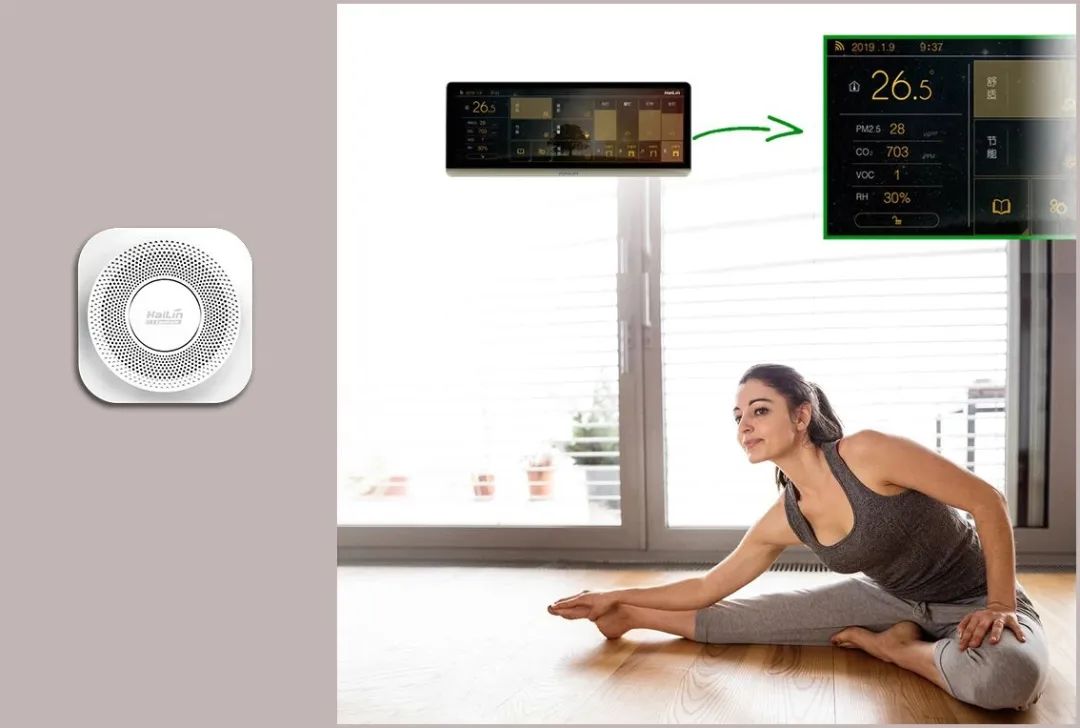 Ate Pro與Ace智能控制面板連接,Ate Pro實(shí)時(shí)監(jiān)測(cè)環(huán)境參數(shù),Ace智能控制面板根據(jù)數(shù)據(jù)精準(zhǔn)調(diào)控新風(fēng)凈化設(shè)備運(yùn)行,保證室內(nèi)環(huán)境健康。同時(shí)系統(tǒng)將采集到的環(huán)境數(shù)據(jù)及設(shè)備運(yùn)行狀態(tài)實(shí)時(shí)顯示在智能面板上,使用戶對(duì)當(dāng)前室內(nèi)環(huán)境健康一目了然。