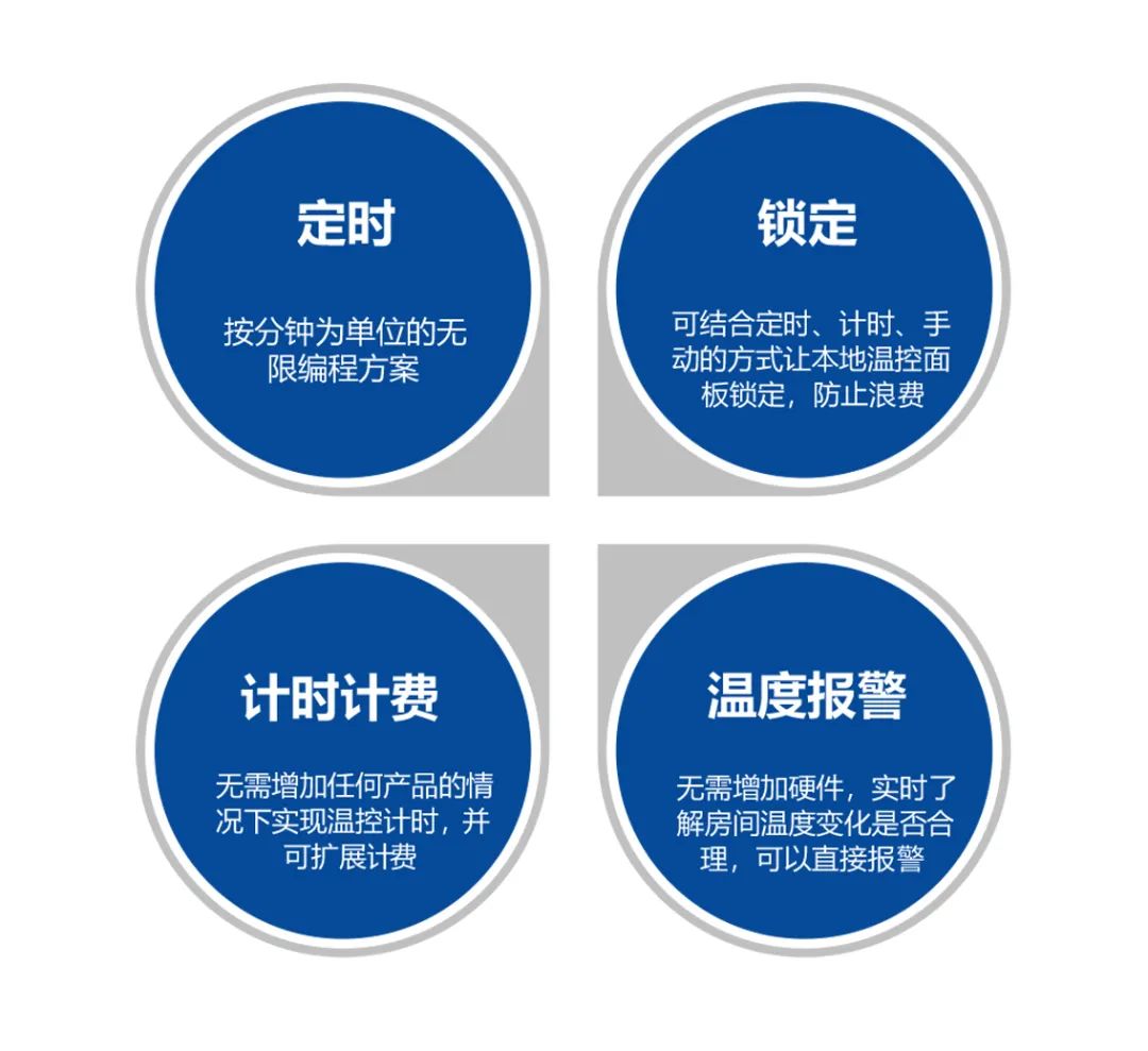 此外,海林HNTS末端溫控器集控系統(tǒng)涵蓋定時、計時計費、鎖定、溫度變化監(jiān)測于一體,實現(xiàn)嚴(yán)格控溫,保證室內(nèi)環(huán)境的舒適健康。