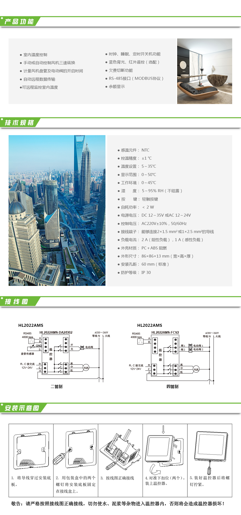 網(wǎng)絡(luò)型計(jì)時(shí)溫控器HL2022AMS適用于寫字樓、商業(yè)地產(chǎn)及家庭居室的溫度控制及對(duì)空調(diào)使用的計(jì)量計(jì)費(fèi)。其具備普通溫控器調(diào)節(jié)室內(nèi)溫度的功能,同時(shí)具有對(duì)風(fēng)機(jī)盤管的三速運(yùn)行時(shí)間、電動(dòng)閥的開(kāi)關(guān)時(shí)間進(jìn)行計(jì)量,并自動(dòng)遠(yuǎn)程傳輸數(shù)據(jù),也可通過(guò)集中控制遠(yuǎn)程監(jiān)控。