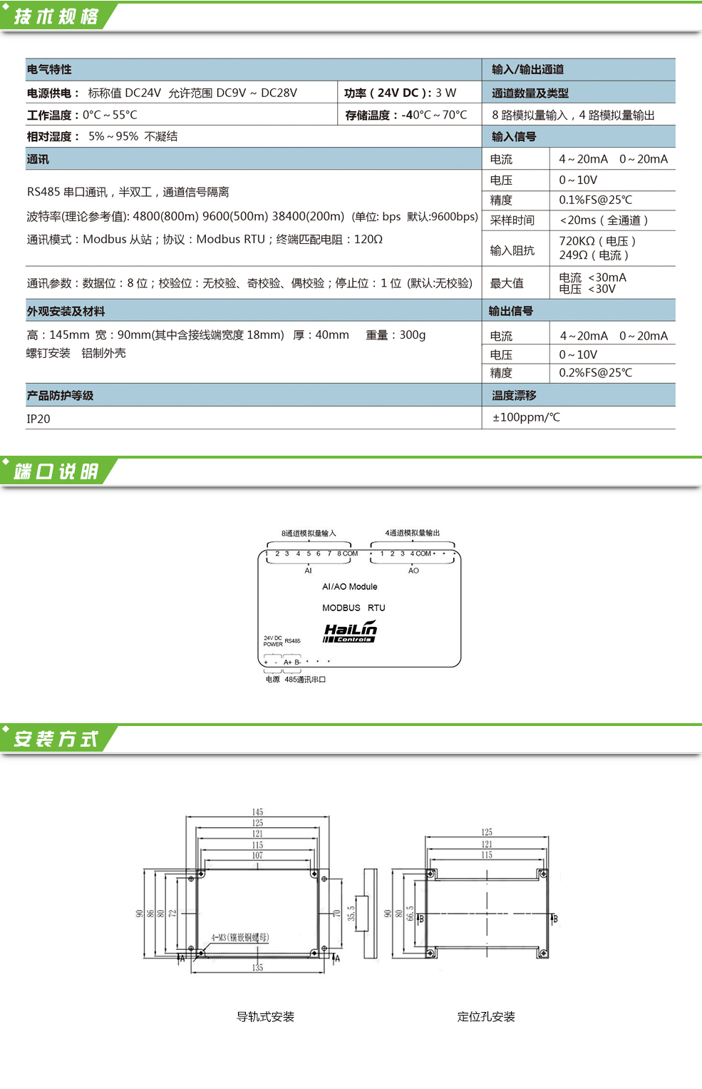 I/O擴(kuò)展模塊HL-M02/HL-M03/HL-M04是一款可通過RS485接口與遠(yuǎn)程主機(jī)或者樓宇控制器通訊的設(shè)備;該產(chǎn)品具有8路電壓0~10V或0~20mA或4~20mA模塊量輸入、4路0~10V或0~20mA或4~20mA模擬量輸出。該控制器具有1路485通訊串口,可實(shí)現(xiàn)與MODBUS設(shè)備通訊。應(yīng)用于樓宇自控系統(tǒng)中與樓宇控制器配套使用。