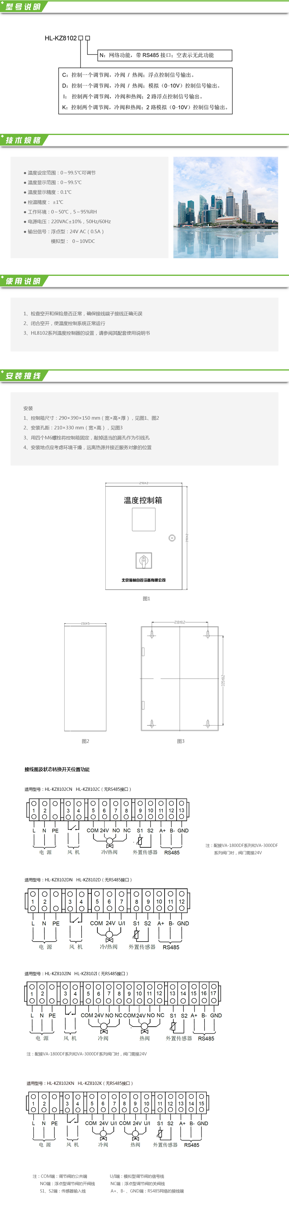 HL-KZ8102系列溫度控制箱配裝HL8102系列溫度控制器,主要應(yīng)用于水系統(tǒng)或風(fēng)系統(tǒng)的溫度控制。通過對檢測參數(shù)與溫度控制器上用戶設(shè)定的參數(shù)相比較、判斷,控制電動(dòng)調(diào)節(jié)閥的開度,根據(jù)溫差控制風(fēng)機(jī)的工作狀態(tài)(起動(dòng)與停止),從而達(dá)到恒定水溫或室溫的目的。